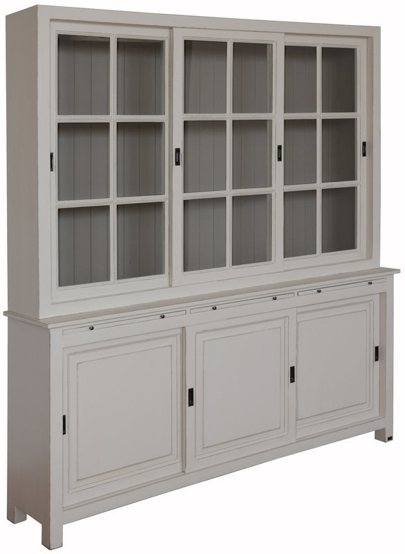 Vitrine grau Landhausstil, Vitrinenschrank grau Landhaus, Geschirrschrank im Landhausstil, Breite 191 cm ist auf Lager und wird versandt, sobald es wieder verfügbar ist