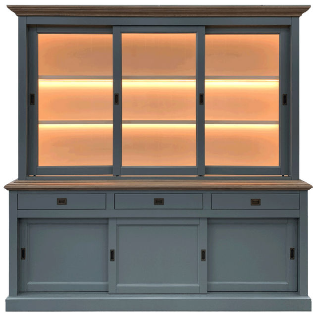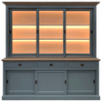 Vitrine grau mit Beleuchtung, Geschirrschrank mit Beleuchtung grau, Vitrine grau Landhausstil, Breite 230 cm