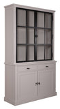 Vitrine grau, Vitrinenschrank grau, Geschirrschrank grau Landhaus, Wohnzimmerschrank grau Landhausstil, Breite 130 cm