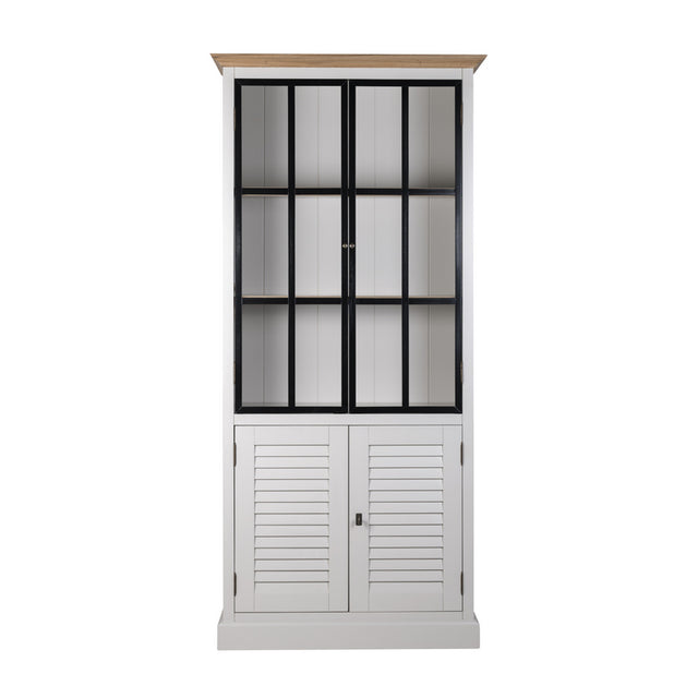 Vitrine im Landhausstil, Geschirrschrank weiß vier Türen Landhausstil, Breite 100 cm