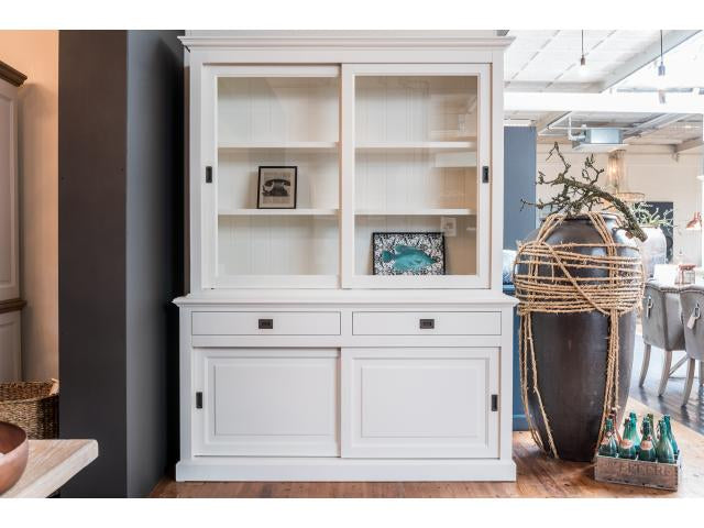 Vitrine weiß, Geschirrschrank weiß, Wohnzimmerschrank weiß Landhausstil, Breite 177 cm