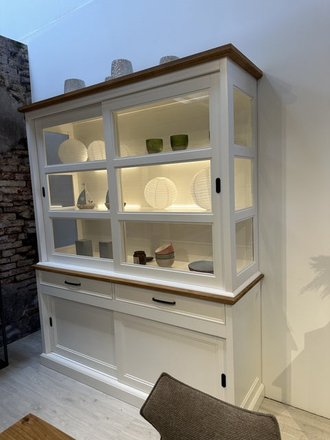 Vitrine weiß mit Beleuchtung, Geschirrschrank mit Beleuchtung weiß, Vitrine weiß Landhausstil, Breite 180 cm