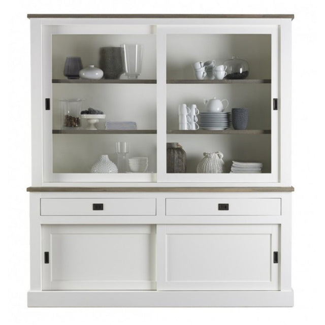 Vitrine weiß, Vitrinenschrank weiß, Geschirrschrank weiß, Wohnzimmerschrank weiß Landhausstil, Breite 180 cm