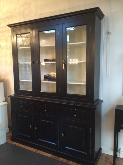 Vitrinenschrank schwarz Landhaus, Geschirrschrank schwarz Landhausstil, Buffetschrank schwarz, Vitrine Landhaus, Breite 177 cm