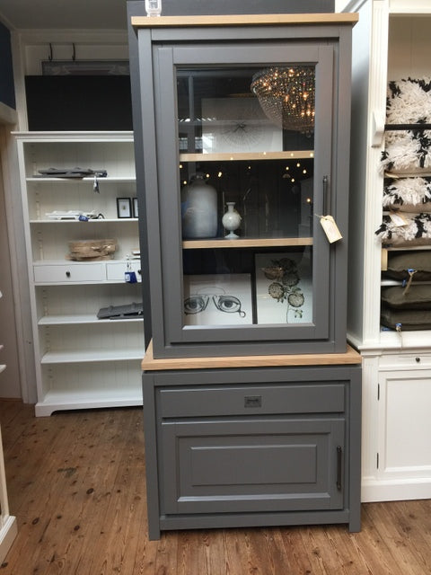 Vitrinenschrank grau, Geschirrschrank grau, Vitrine grau Landhausstil, Breite 95 cm