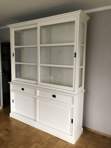 Buffetschrank weiß Landhausstil, Vitrine weiß Landhaus, Geschirrschrank weiß, Breite 232 cm