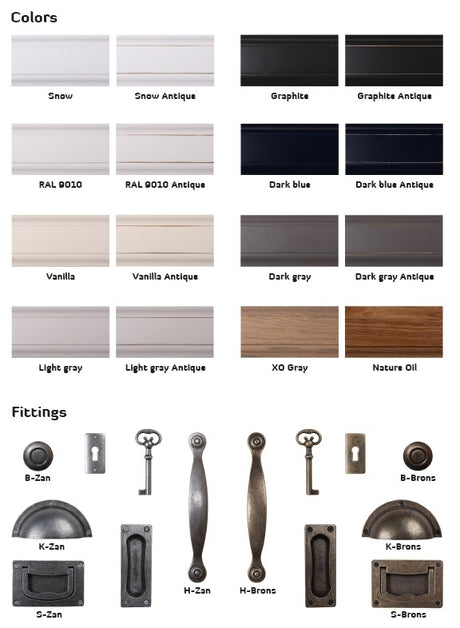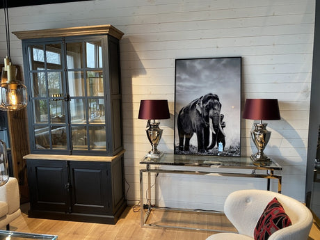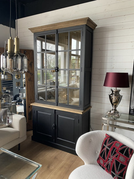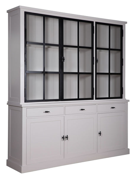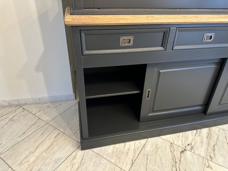 Geschirrschrank grau, Buffetschrank grau, Vitrine grau, Landhaus Küchenschrank grau, Breite 220 cm