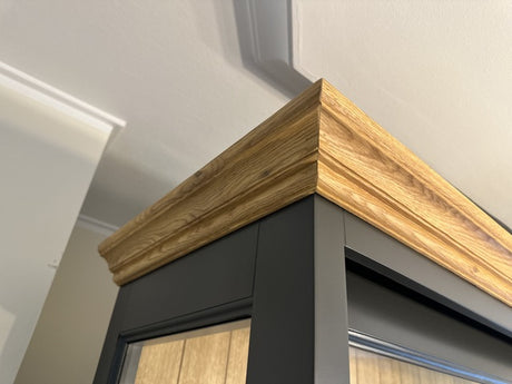 Vitrinen Eiche massiv, Geschirrschrank Eiche im Landhausstil, Breite 138 cm