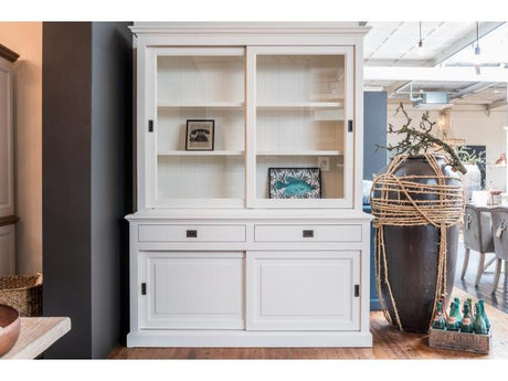 Vitrine weiß, Geschirrschrank weiß, Schrank weiß Landhaus, Breite 177 cm