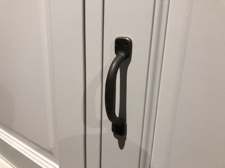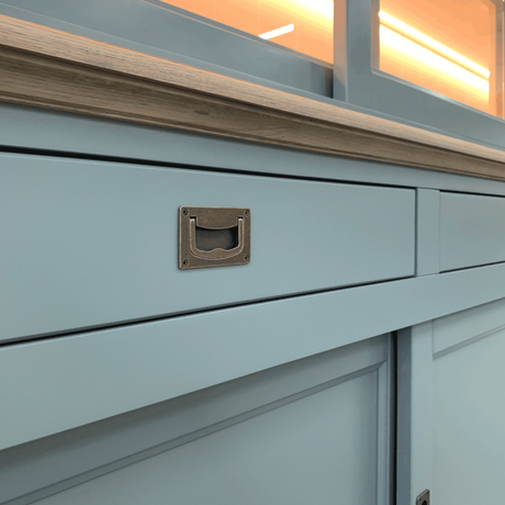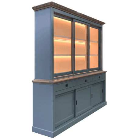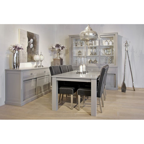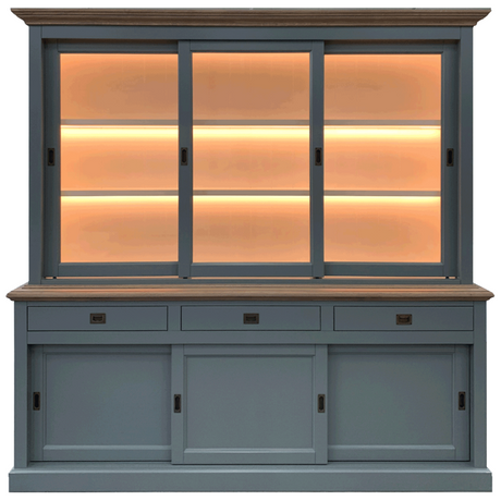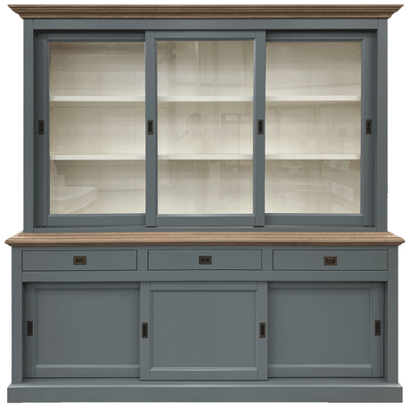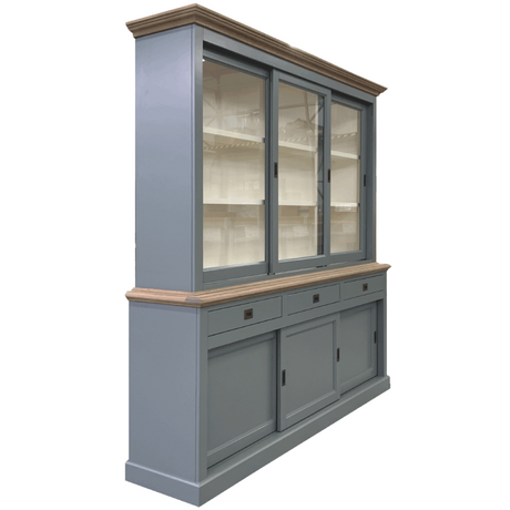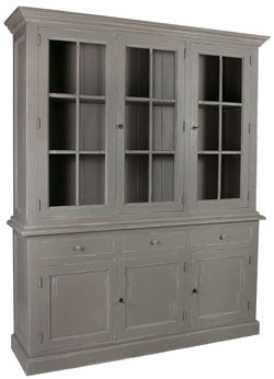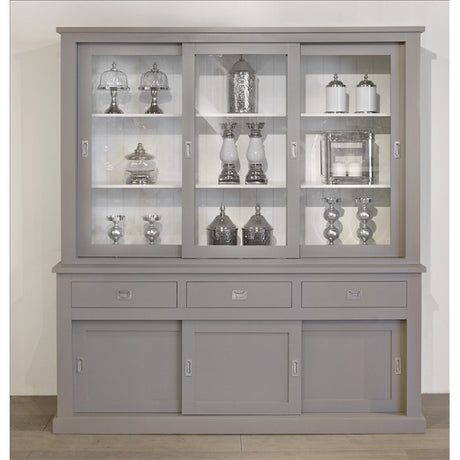 Vitrine grau, Geschirrschrank grau Massivholz, Küchenschrank grau Landhaus, Breite 185 cm