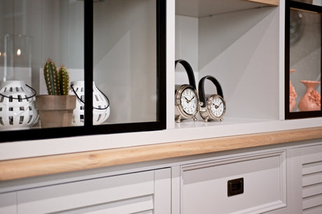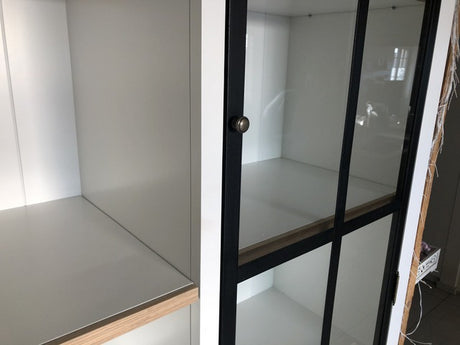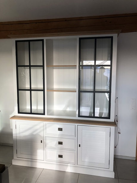 Vitrine schwarz-weiß, Geschirrschrank schwarz, Schrank schwarz Landhaus, Breite 230 cm