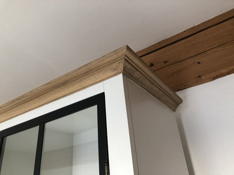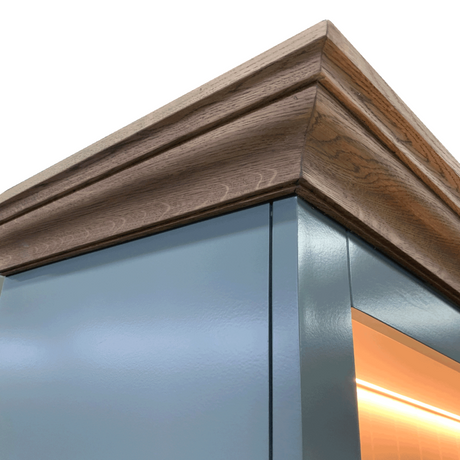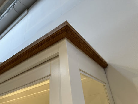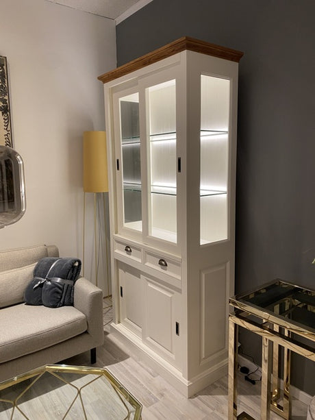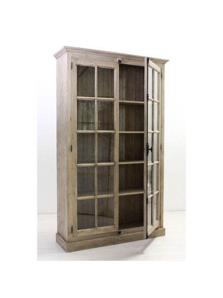 Vitrine Massivholz, Geschirrschrank Landhaus, Bücherschrank Massivholz in vier Farben, Breite 136 cm