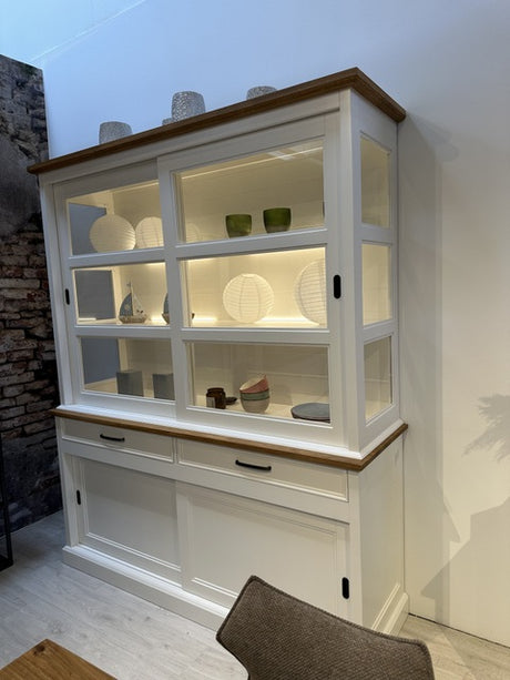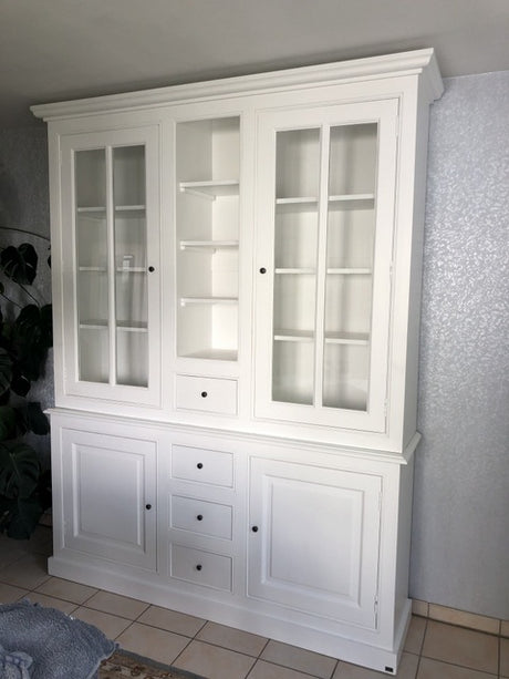 Geschirrschrank weiß Landhaus , Vitrine Landhausstil weiß, Schrank weiß Landhaus, Breite 300 cm