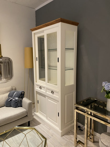Vitrine weiß Landhaus, Schrank weiß Landhaus, Geschirrschrank weiß Landhausstil, Höhe 102 cm