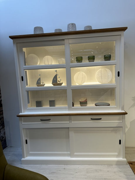 Vitrine im Landhausstil, Geschirrschrank weiß vier Türen Landhausstil, Breite 176 cm