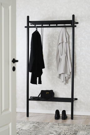 Garderobe schwarz Eiche, Wandgarderobe schwarz Holz Eiche, Breite 91 cm