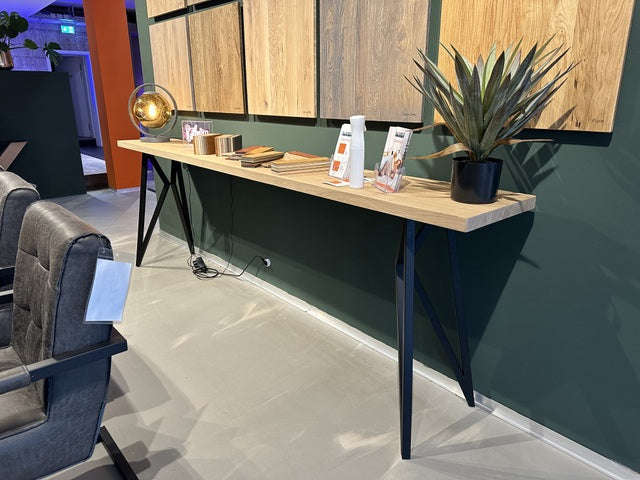 Konsole Eiche massiv Platte, Konsole Metall-Gestell Holz Tischplatte, Wandtisch Eiche massiv, Breite 180 cm