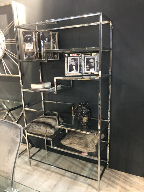 Regal Silber, Glas Regal verchromt, Bücherregal Silber, Maße 178 x 100 cm ist auf Lager und wird versandt, sobald es wieder verfügbar ist