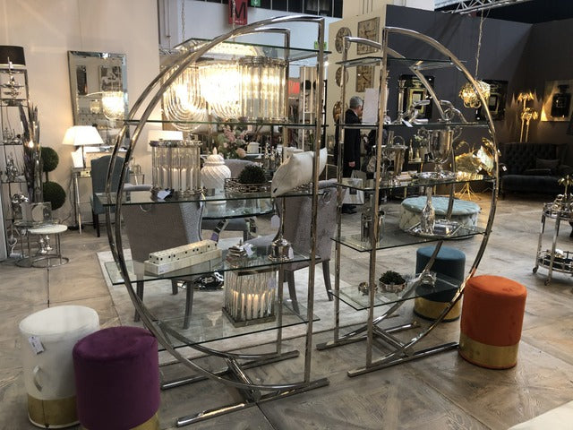 Regal verchromt, Bücherregal verchromt, Regal rund Glasplatten, Durchmesser ca.210 cm ist auf Lager und wird versandt, sobald es wieder verfügbar ist