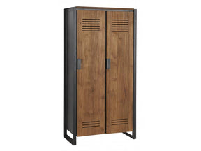 Schrank im Industriedesign, Kleiderschrank aus Metall und Holz, Breite 80 cm