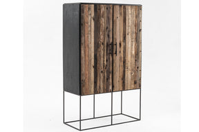 Schrank Industriedesign Metall Holz, Aktenschrank Holz rustikal, Breite 110 cm