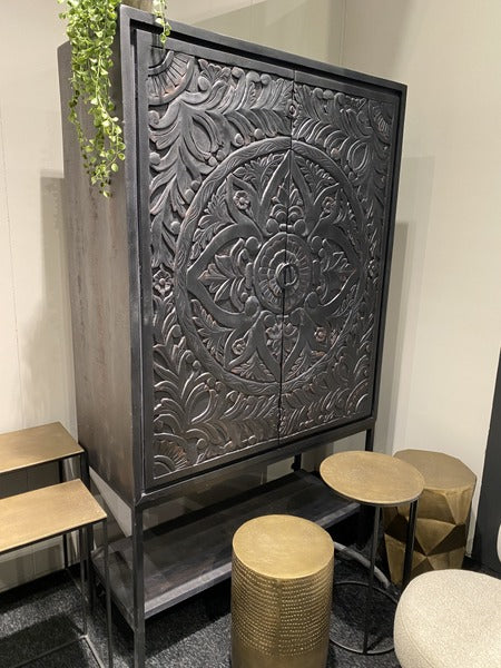 Schrank Ornament schwarz, Aktenschrank schwarz, Kleiderschrank schwarz, Breite 110 cm ist auf Lager und wird versandt, sobald es wieder verfügbar ist