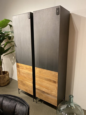 Schrank rechts Metall Holz, Bücherschrank Holz, Schrank mit drei Schubladen, Breite 55 cm