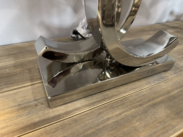 Tischlampe Silber, Tischleuchte Silber-schwarz, Tischlampe mit Lampenschirm oval, Höhe 56 cm