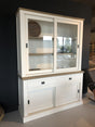 Vitrine weiß Massivholz Eiche, Geschirrschrank weiß-braun Landhaus, Breite 160 cm ist auf Lager und wird versandt, sobald es wieder verfügbar ist