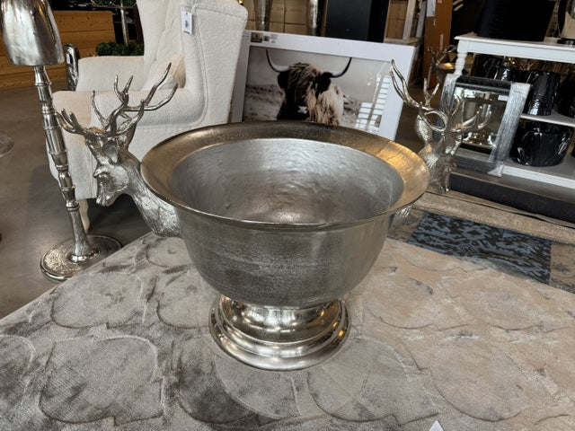 Weinkühler Hirschkopf Silber, Sektkühler Hirschkopf XXL, Champagnerkühler Silber Hirschkopf, Breite 107 cm