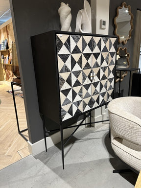 Wohnzimmerschrank schwarz-weiß-beige, Schrank Marmor weiß-schwarz, Breite 100 cm