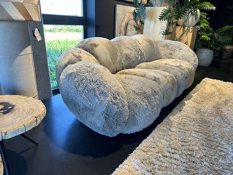 2-3 Sitzer Sofa beige Kunstfell, Sitzsofa beige Plüsch, Breite 238 cm