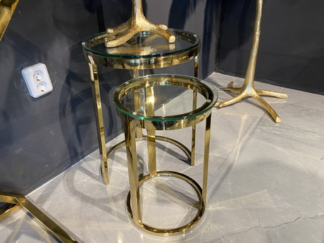 2er Set Beistelltisch Gold, runder Beistelltisch Gold, Durchmesser 40 cm