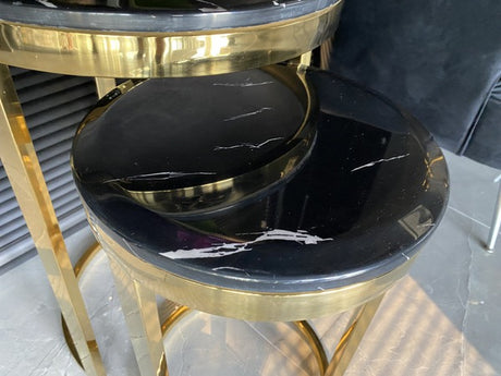 2er Set Beistelltisch schwarz, runder Beistelltisch Gold, Durchmesser 40 cm