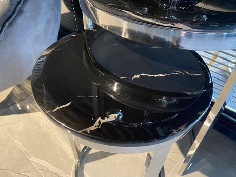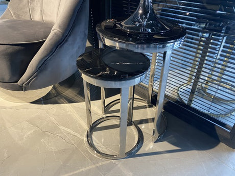 2er Set Beistelltisch schwarz, runder Beistelltisch Silber, Durchmesser 40 cm