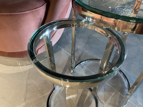 2er Set Beistelltisch Silber, runder Beistelltisch Silber, Durchmesser 40 cm