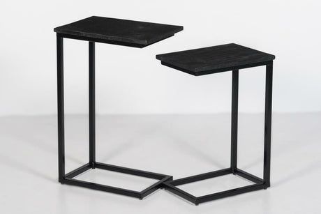 2er Set Beistelltisch schwarz, Beistelltisch Industriedesign, Breite 60 cm