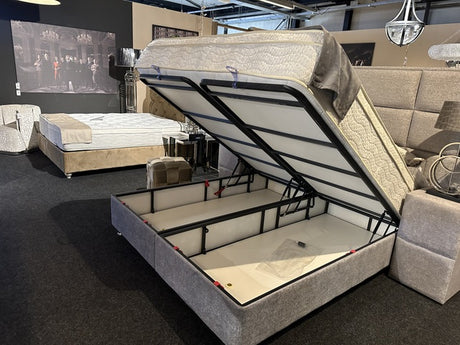 Bett Kopfteil gepolstert, Bett Silber-grau, Maße Matratze 200x180 cm