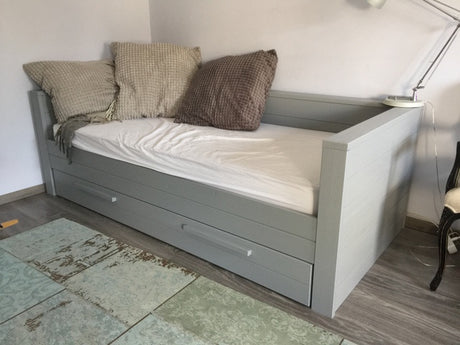 Bett grau Holz, Jugendbett Massivholz grau, Tagesbett Holz grau, Bett-Sofa grau Holz massiv