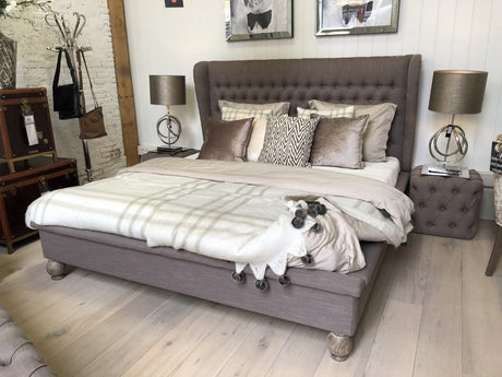 Bett taupe gepolstert, gepolstertes Bett Landhausstil taupe, Maße 224 x 205 cm