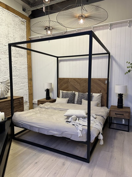 Bett Altholz schwarz-braun, Himmelbett Altholz, Breite 180 cm