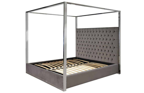 Bett Chesterfield gepolstert, Himmelbett grau, Bett grau, Breite 180 cm