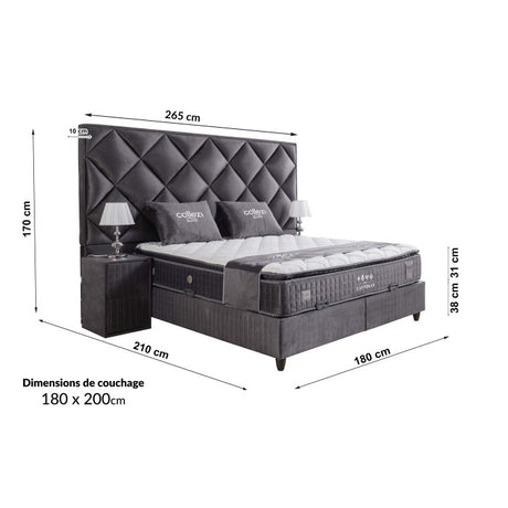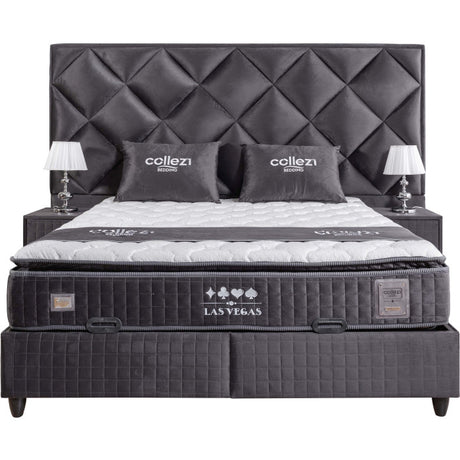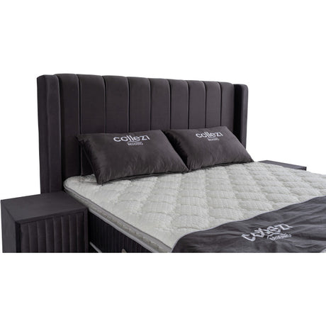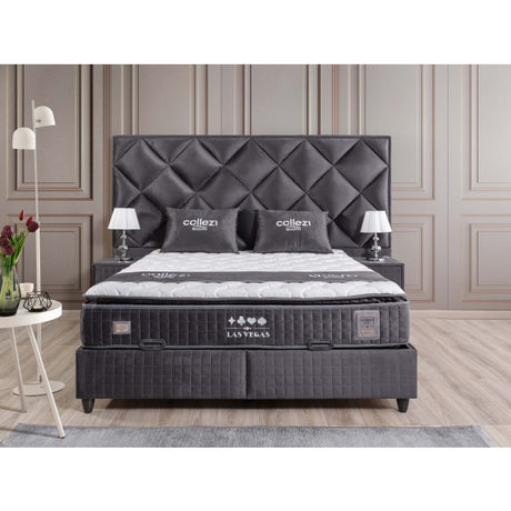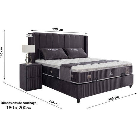 Gepolstertes Bett mit Matratze und Kopfteil, Bett anthrazit mit Kopfteil, Breite 180 cm