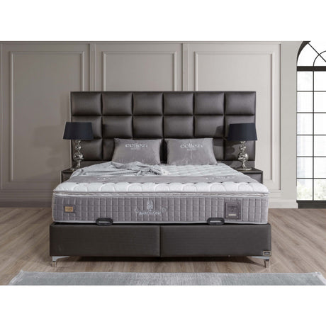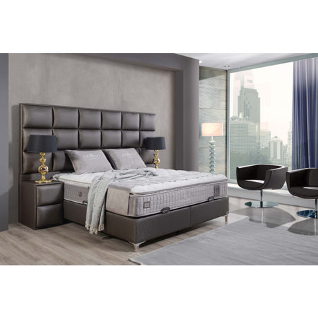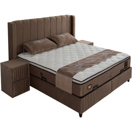 Gepolstertes Bett mit Matratze und Kopfteil, Bett braun mit Kopfteil, Breite 180 cm