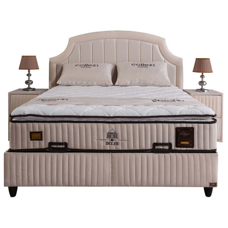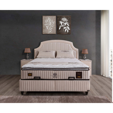 Gepolstertes Bett mit Matratze und Kopfteil, Bett beige mit Kopfteil, Breite 180 cm