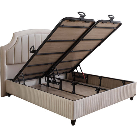 Gepolstertes Bett mit Matratze und Kopfteil, Bett beige mit Kopfteil, Breite 160 cm
