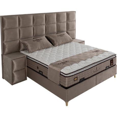 Gepolstertes Bett mit Matratze und Kopfteil, Bett taupe mit Kopfteil, Breite 180 cm