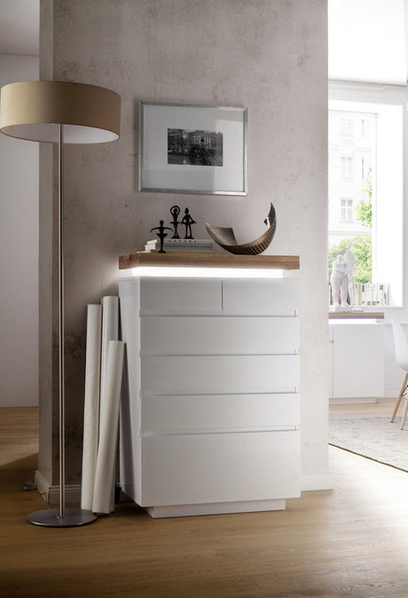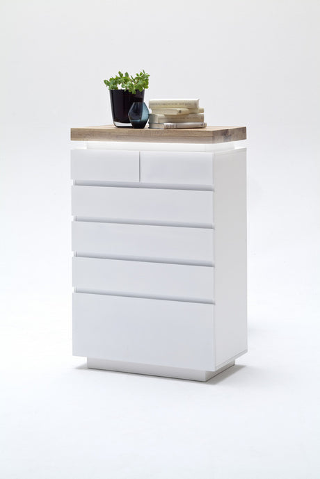 Kommode Weiß matt lackiert mit eine massive Oberplatte, Breite 73 cm