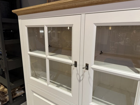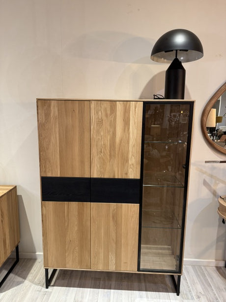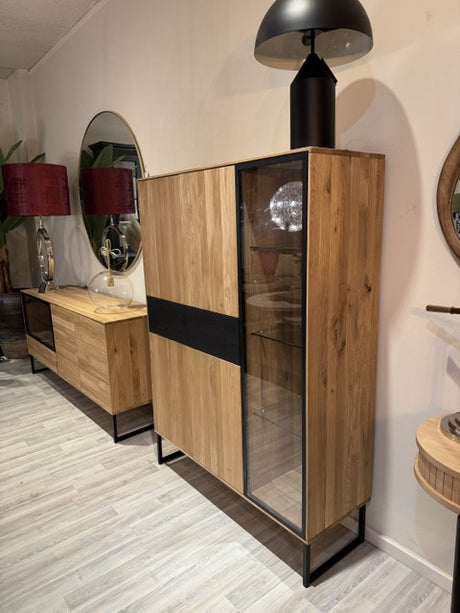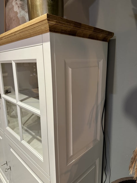 Highboard Eiche massiv, Hochschrank mit Glastür Eiche, Breite 116 cm
