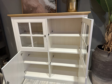 Highboard weiß Landhaus, Schrank weiß Landhaus, Geschirrschrank weiß Landhausstil, Höhe 154 cm